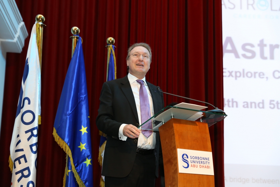 من جهته، قال عيسى الرئيسي، مدير إدارة شؤون الطلبة في جامعة السوربون أبوظبي: "يعكس منتدى التوظيف "استرولاب" التزام الجامعة بدعم الطلبة ليكونوا مستعدين للانتقال إلى مكان العمل، وتطوير مهاراتهم، وتعزيز ثقتهم من خلال التواصل مع أصحاب العمل والخبراء، فضلاً عن بناء جسر بين الجامعة ومنتسبيها والشركات. وفي هذا الإطار، لطالما كانت الجامعة ناشطة في التعاون مع عدد من المؤسسات لتوفير الفرص الوظيفية المناسبة لطلبتها".