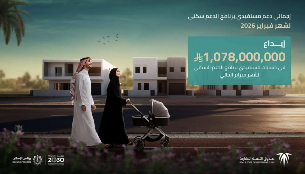 أعلن صندوق التنمية العقارية اليوم إيداع مليار و78 مليون ريال في حسابات مستفيدي برنامج الدعم السكني من وزارة البلديات والإسكان والصندوق العقاري، وذلك عن شهر فبراير 2026م.