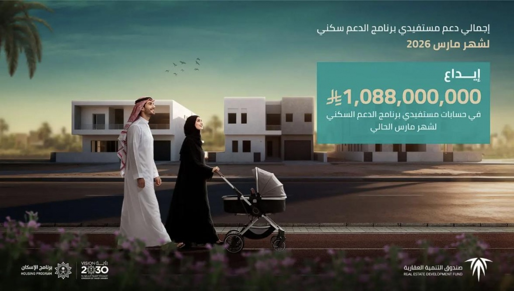 أعلن صندوق التنمية العقارية اليوم، إيداع مليار و88 مليون ريال في حسابات مستفيدي برنامج الدعم السكني من وزارة البلديات والإسكان، والصندوق العقاري عن شهر مارس 2026م.