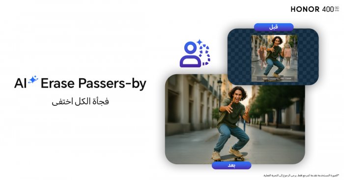 من الجدير بالذكر أن هذه الميزة تعمل مباشرة على جهازك، مما يضمن أمانًا وخصوصية أعلى لصورك دون الحاجة إلى استخدام تطبيقات خارجية. وتُعد ميزة "AI Erase Passers-by" واحدة من الابتكارات الذكية ضمن مجموعة محرر الإبداع بالذكاء الاصطناعي"AI Creative Editor suite" الجديدة من HONOR 400 Series. وبالاقتران مع أدوات التحرير الأخرى المتقدمة المدعومة بالذكاء الاصطناعي، توفر هذه المجموعة للمستخدمين كل ما يحتاجونه لإطلاق العنان لإبداعهم والارتقاء بصورهم إلى مستوى جديد كليًا.