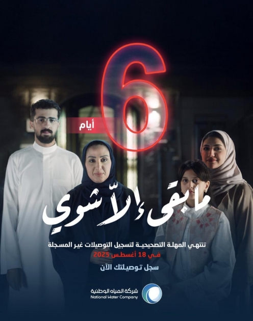 دعت شركة المياه الوطنية عملاءها الذين لديهم توصيلات مياه أو صرف صحي غير مسجلة أو غير نظامية، إلى الإسراع في تصحيح أوضاعهم والتسجيل قبل انتهاء المهلة التصحيحية المحددة في 18 أغسطس 2025، مؤكدة أن المبادرة الحالية تمثل فرصة للاستفادة من الإعفاء من الغرامات والمقابل المالي للتوصيلات المخالفة.