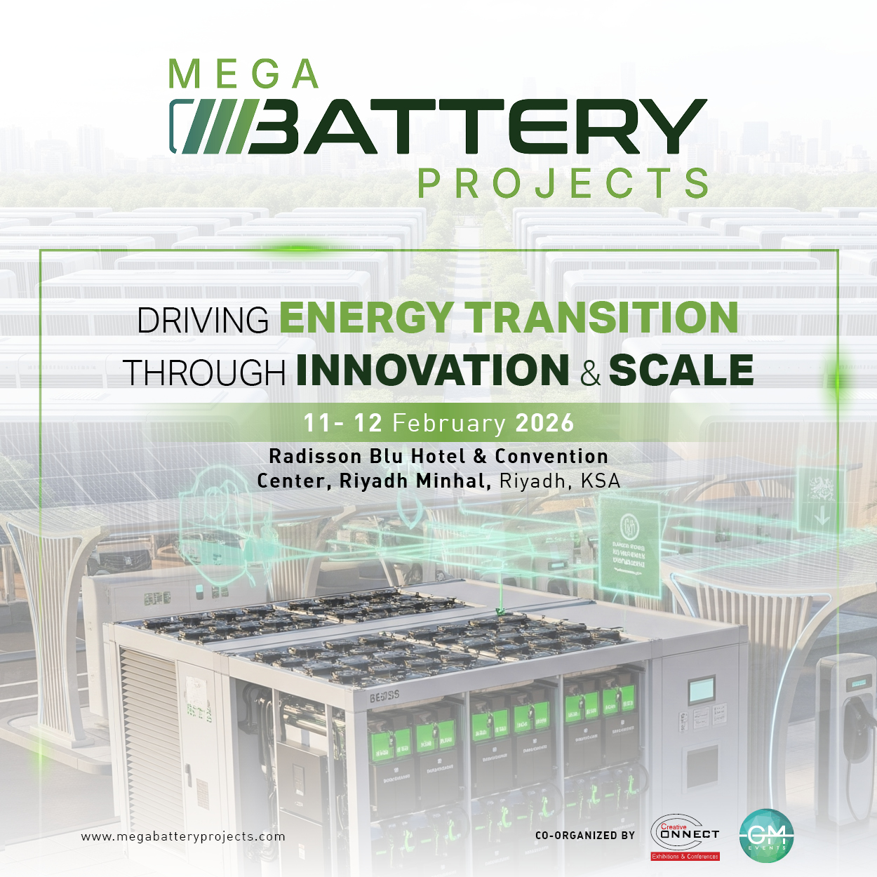 The Mega Battery Project is the MENA region’s premier platform dedicated to utility-scale battery storage, BESS integration, Electric Vehicles, EV Charging infrastructures and the future of energy resilience. As governments and private sector entities across the region, especially the Saudi Arabia and United Arab Emirates, pursue renewable energy goals for 2030 and 2050, the role of energy storage has moved from a support function to a critical infrastructure investment.