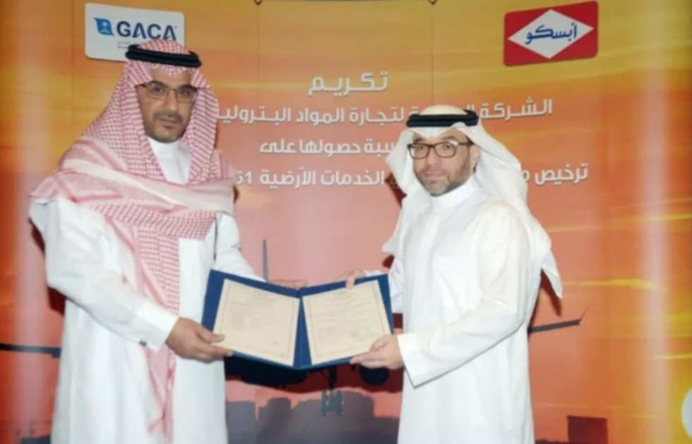 سلّم ياسر بن منصور المعيوف مساعد رئيس الهيئة العامة للطيران المدني لمعايير الطيران المهندس عزام بن محمد طاهر قاري مدير عام الوقود بالشركة العربية لتجارة المواد البترولية (أبسكو) ترخيص مشغلي ومزودي الخدمات الأرضية " GACAR Part 151 " كأول شركة وطنية تحصل على هذا الترخيص في مجال تزويد الطائرات بالوقود بالمملكة، في حفل نظم بهذه المناسبة في فندق الريتز كارلتون بجدة اليوم الخميس 05/12/1439هـ الموافق 16/08/2018م .