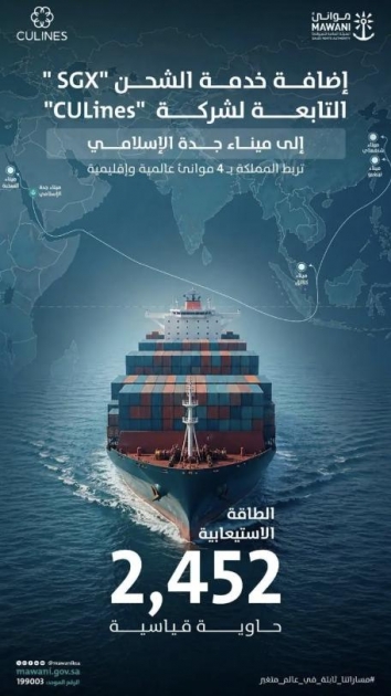 وتعمل خدمة الشحن الجديدة على ربط ميناء جدة الإسلامي بموانئ شنغهاي، ونانشا في الصين، وكذلك في ماليزيا والسخنة بمصر، بطاقة استيعابية تصل إلى 2,452 حاوية قياسية.