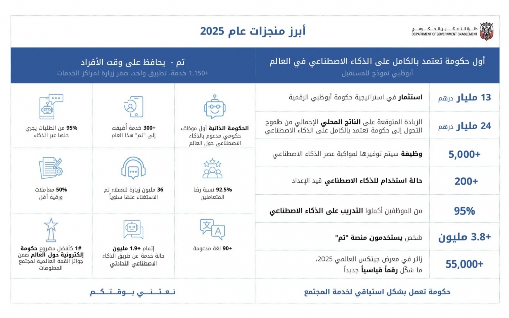 Ahmed Tamim Hisham Al Kuttab, Chairman of the Department of Government Enablement – Abu Dhabi, said, "In Abu Dhabi, we are building the government of the future, where AI is intrinsic to its foundation. And in 2025, we proved how this isn’t a distant vision, it’s our daily reality and already changing the lives of millions.